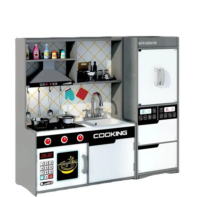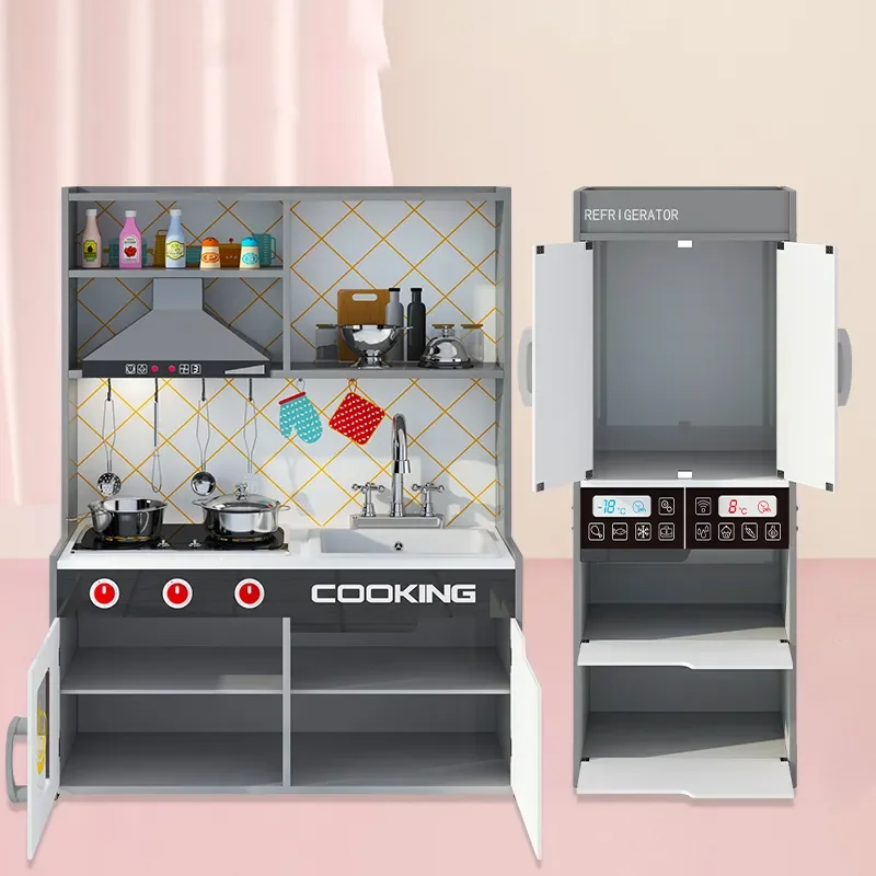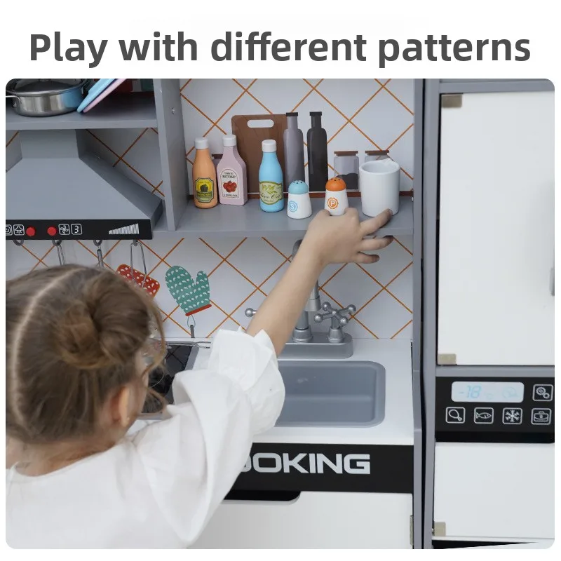Realistic Cooking Utensils Included Kids Wooden Pretend Play Kitchen Toy Set for Early Learning and Role Play
