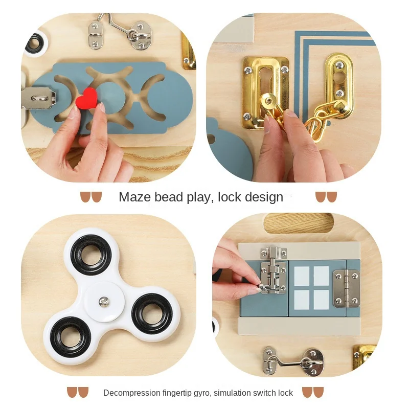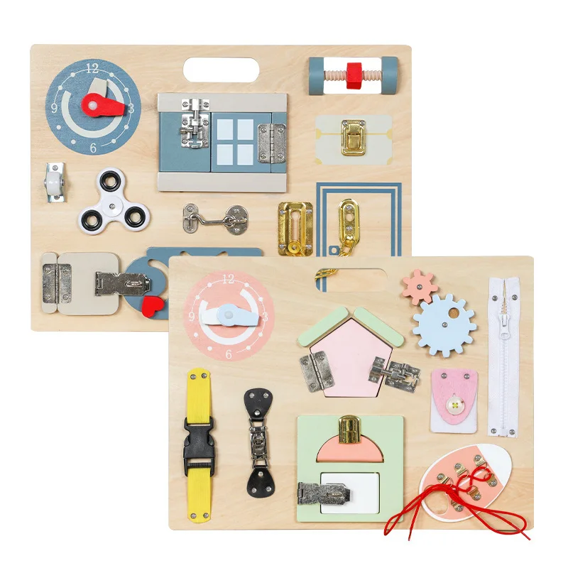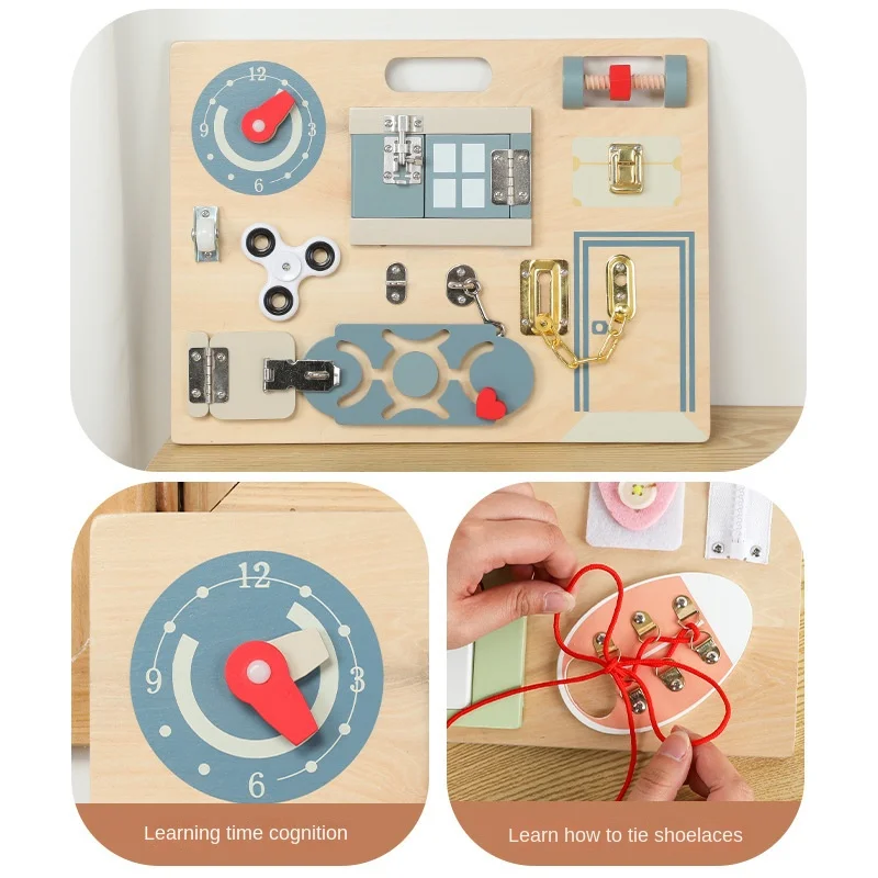 Kids Wooden Busy Board Early Learning Toy for Life Skills Development Motor Activity Montessori Sensory Play Educational Gift