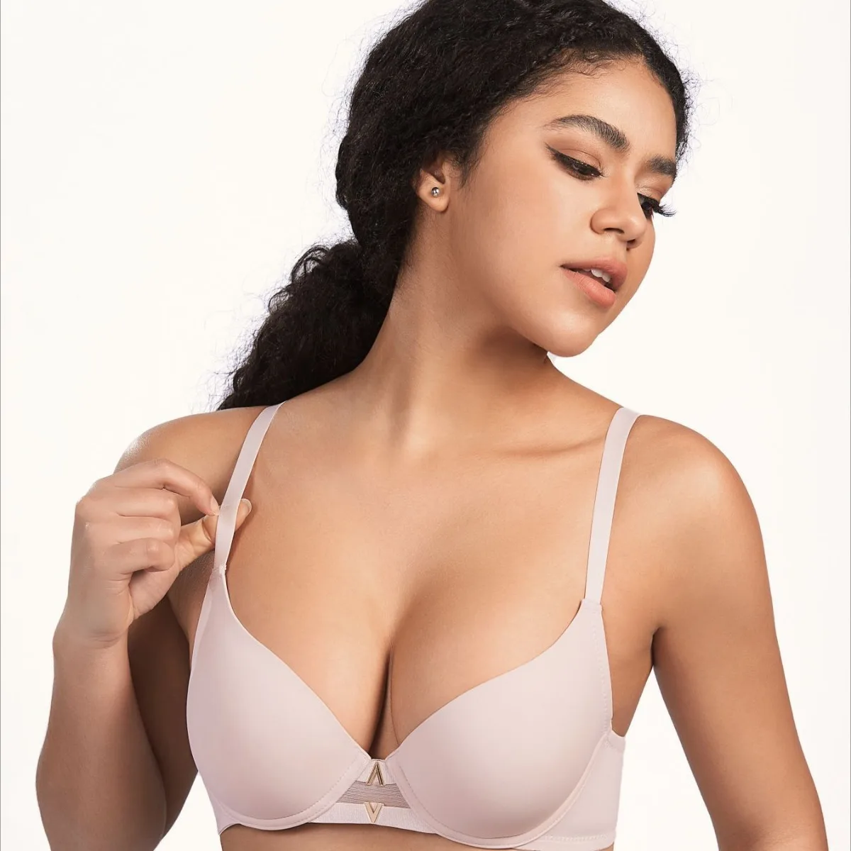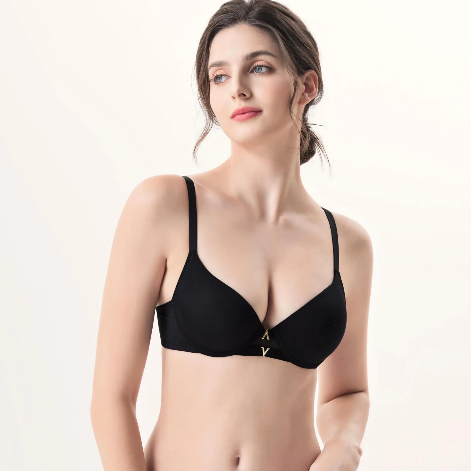 New Product Custom Full Cup Lady V Neck Support and Lift Push up Seamless Sport Padded Smoothing T Shirt Bra No Underwire