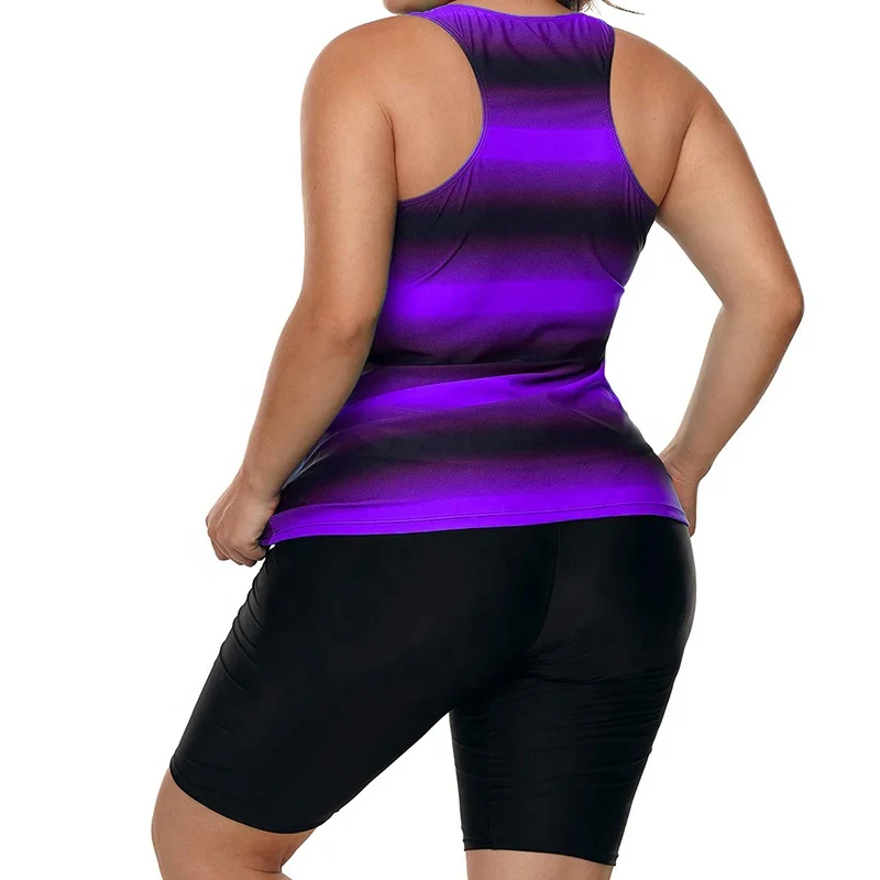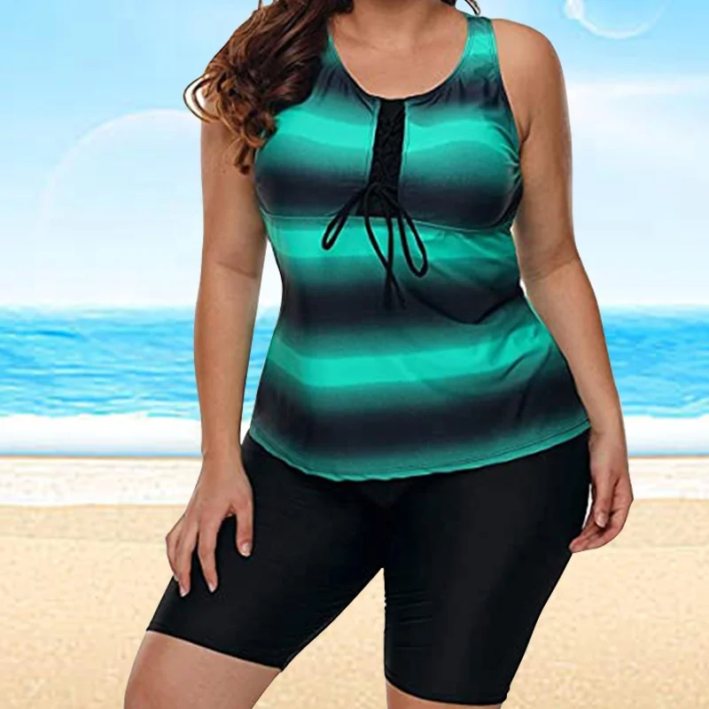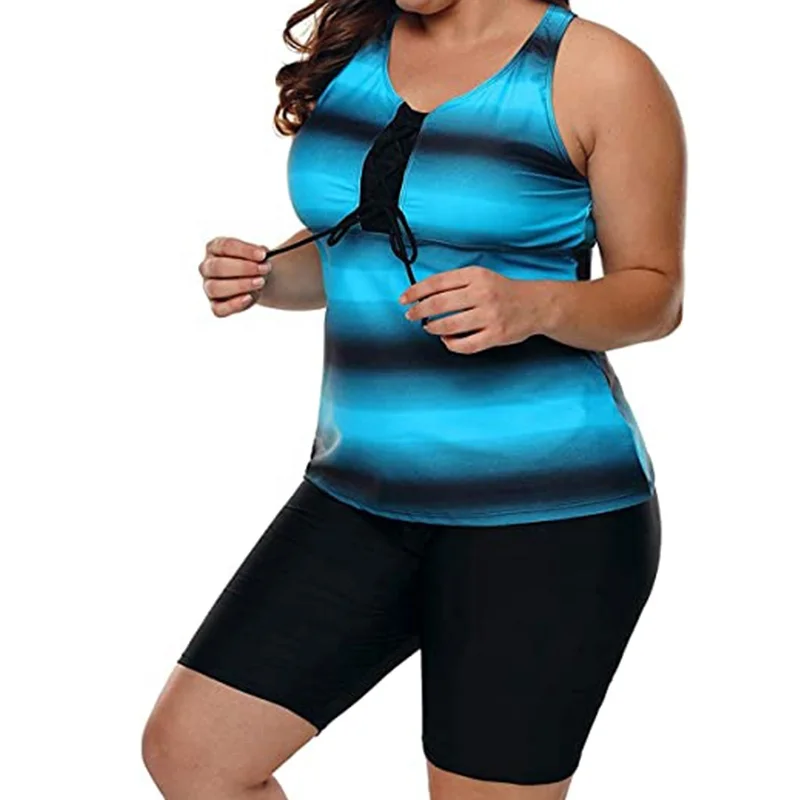 Wholesale Plus Size Floral Print Women's Tankinis Swimsuit 2-Piece Set with Front Logo Short Included