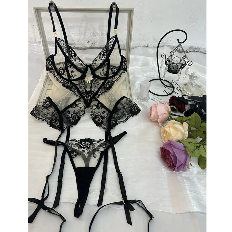 Wholesale Trim Adult Costume Girl Lace See-through Corset Erotic Red Lingerie Transparent Women's Sexy Black Underwear