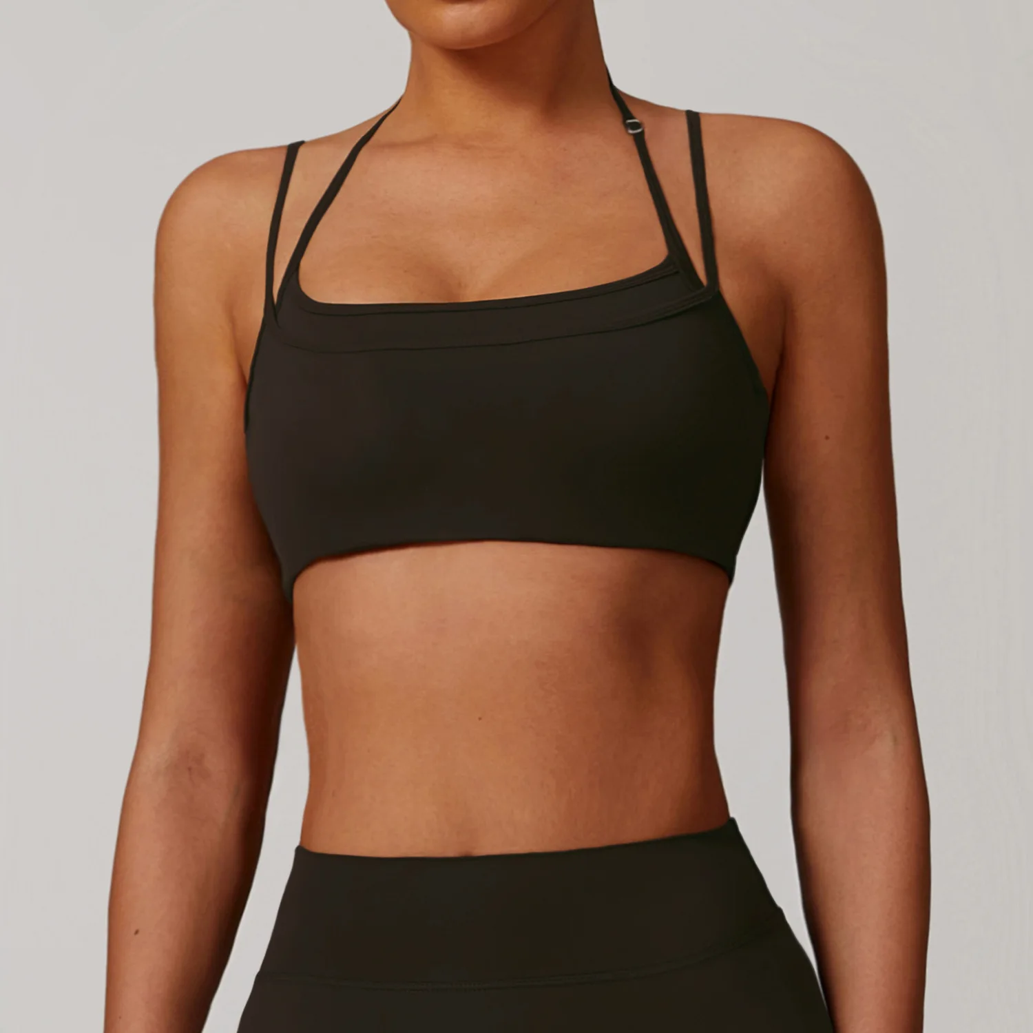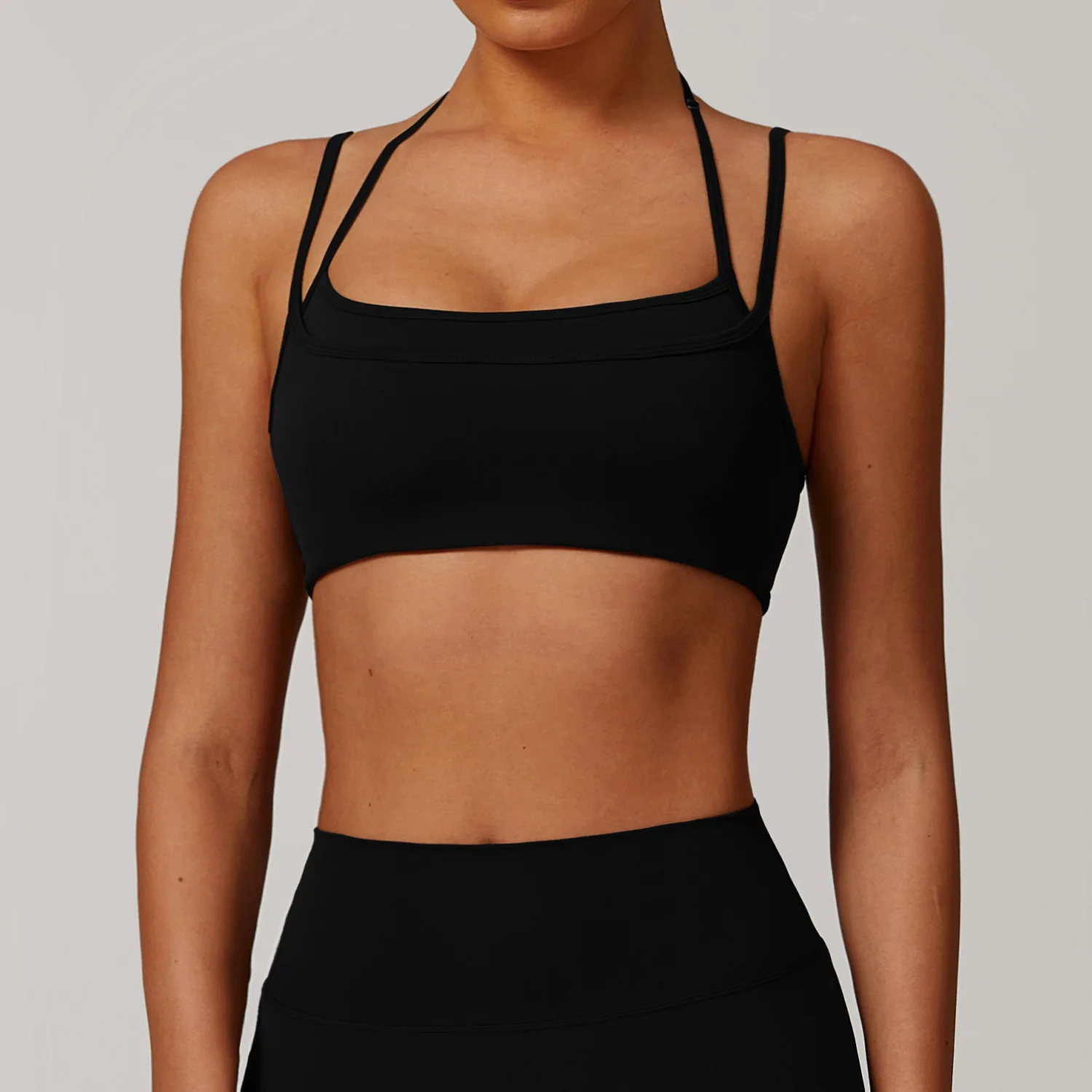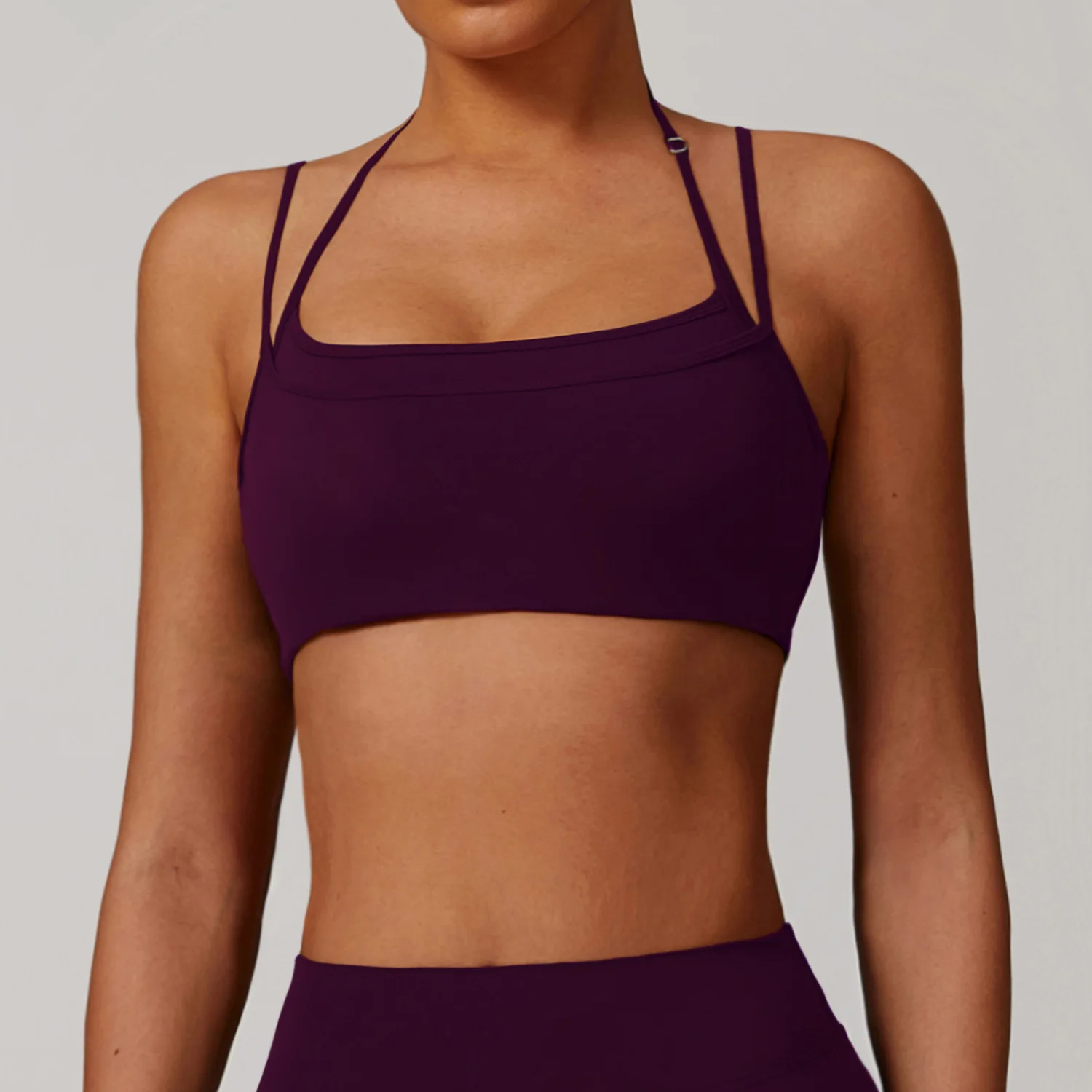 TOPKO High Quality OEM Women's Back Nude Yoga Bra Quick Dry Sports Elastic Shoulders Hanging Neck Fitness Running Underwear