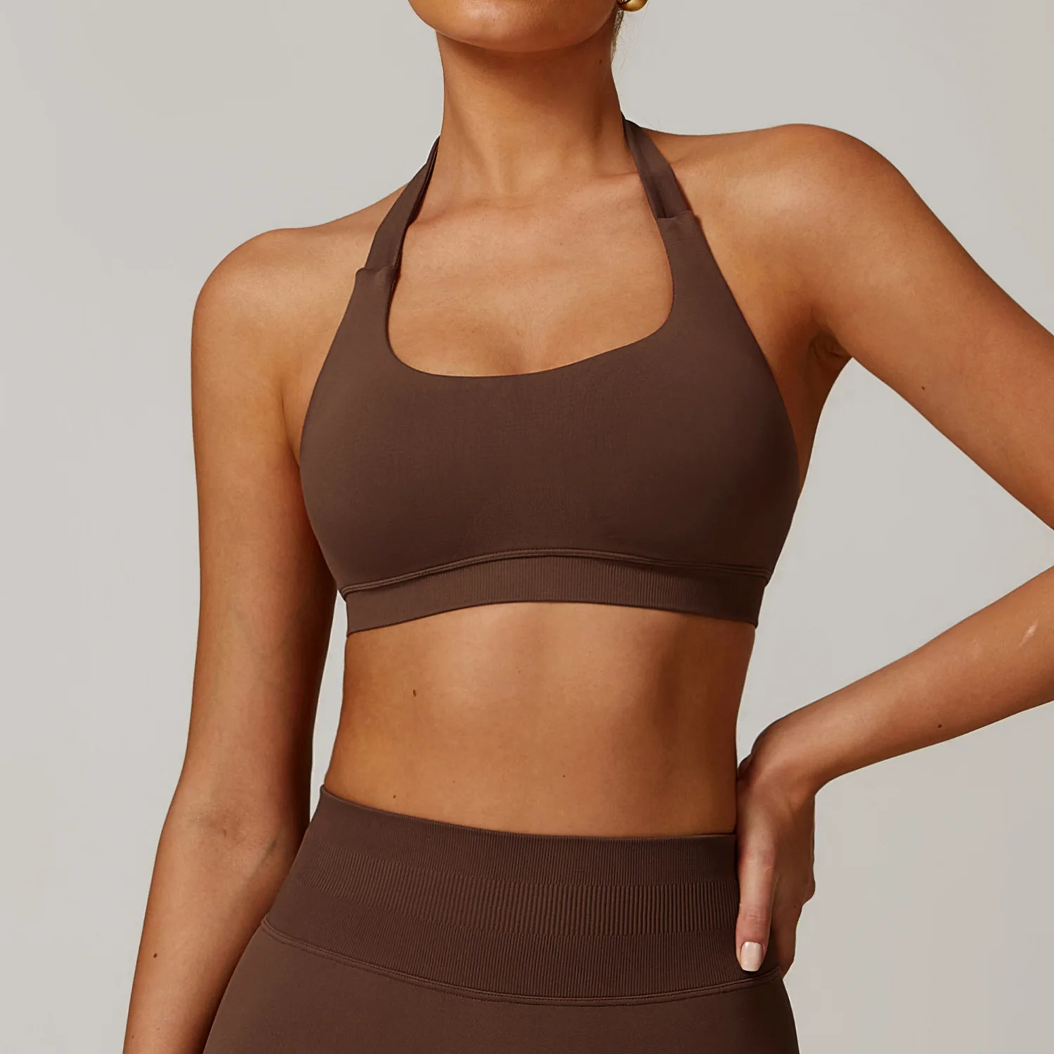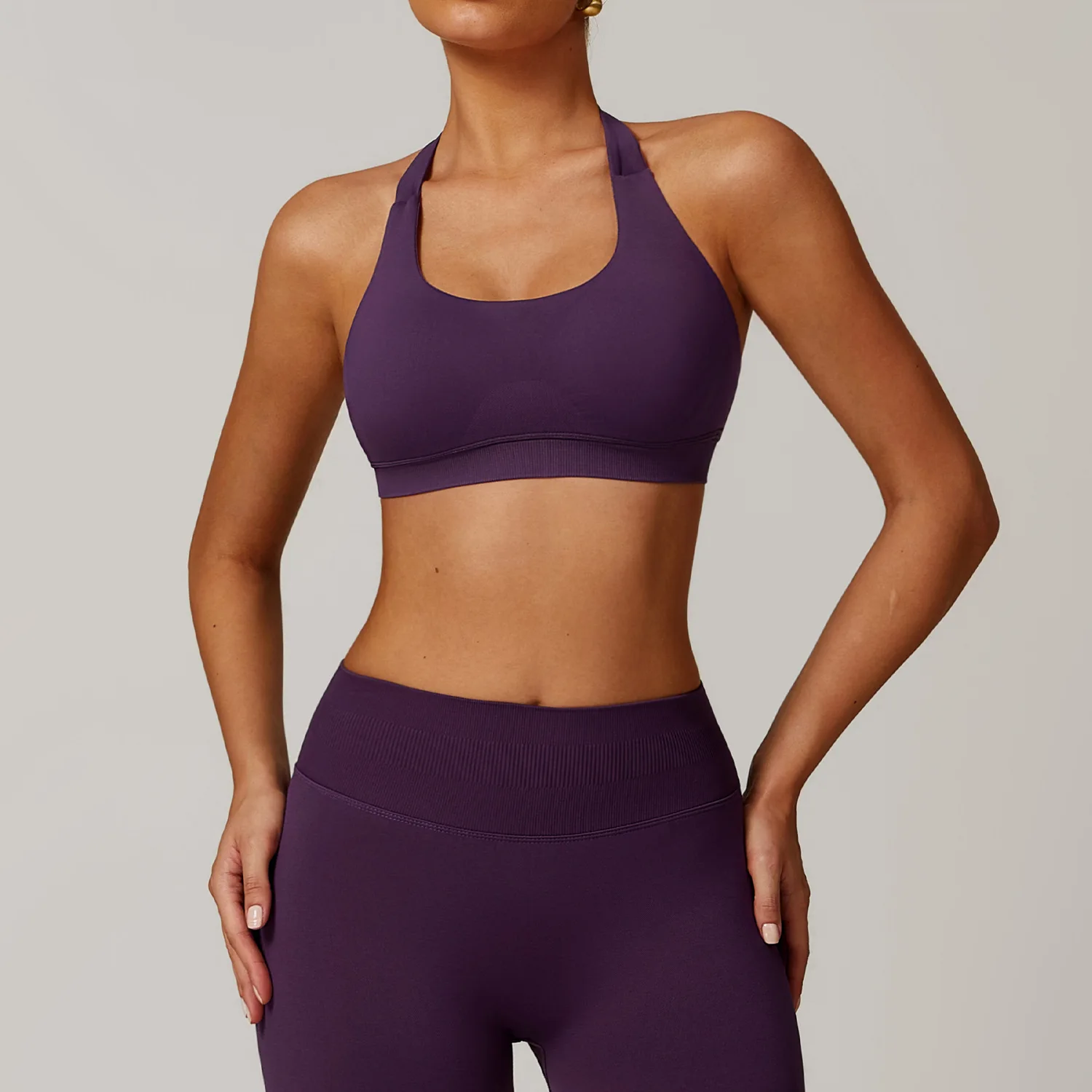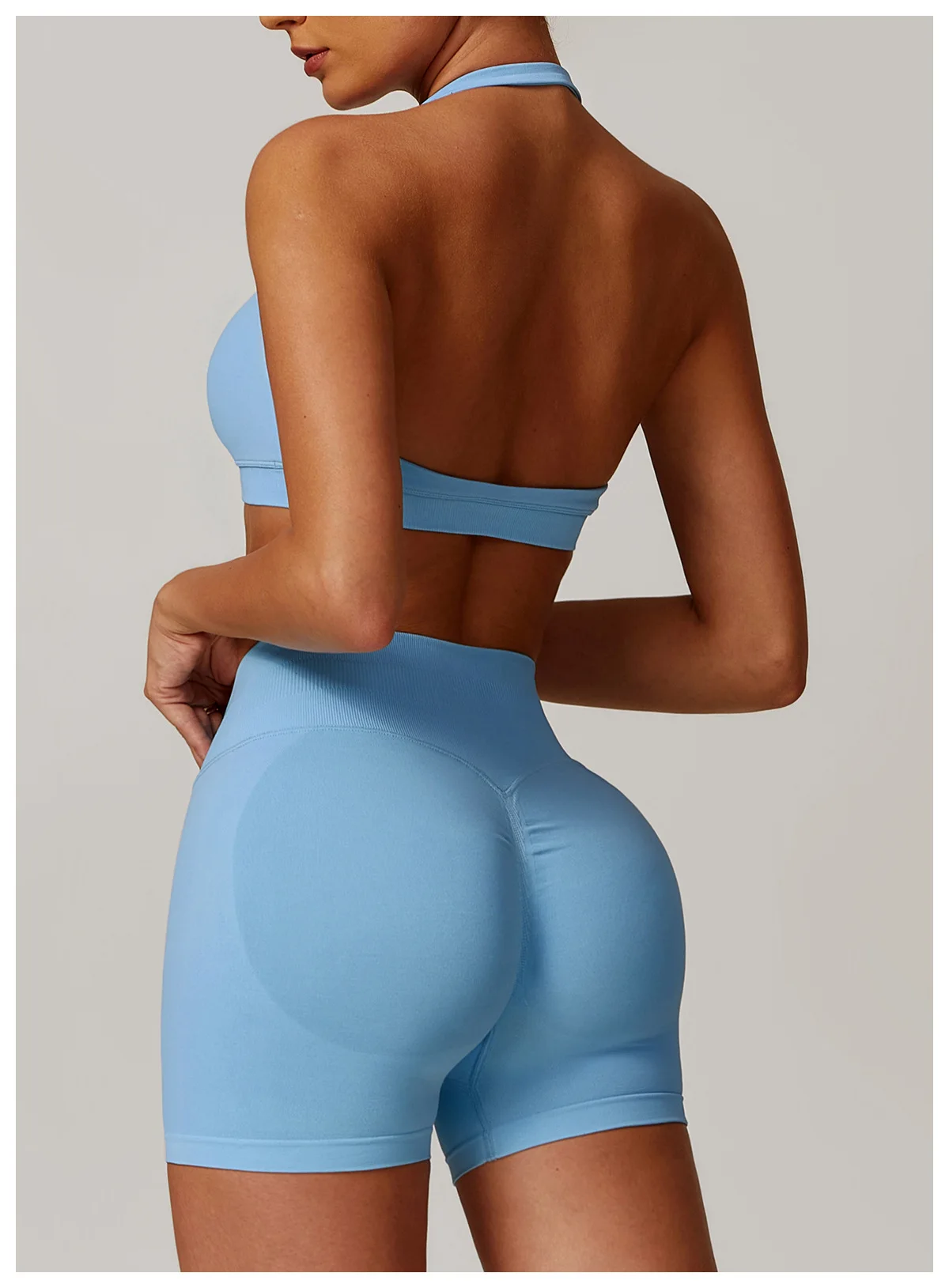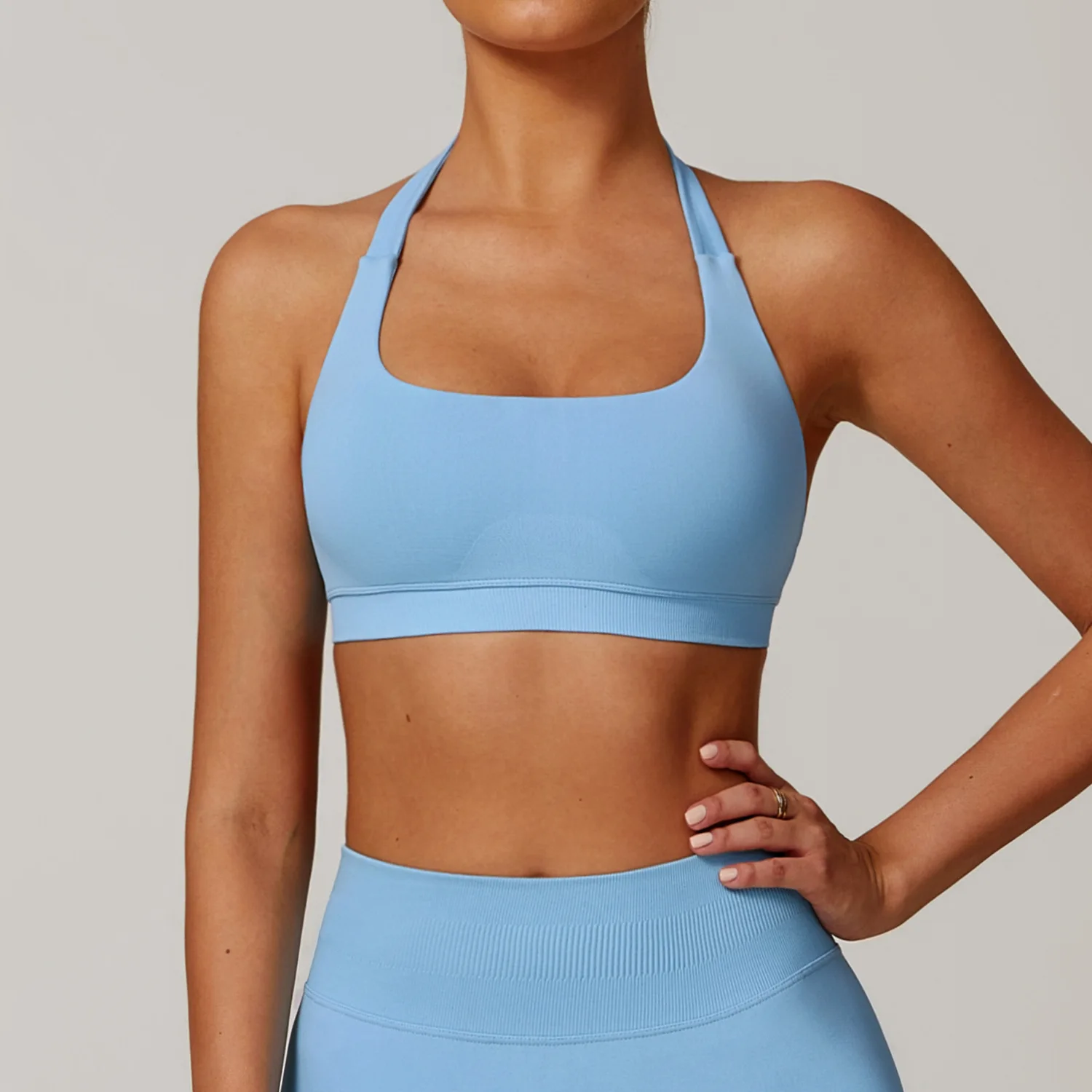 YISHENHON OEM/ODM Custom Workout Halter Scrunch Sports Bra Women Girls Stretchy Compression Quick Dry Padded Sexy Pants Polybag