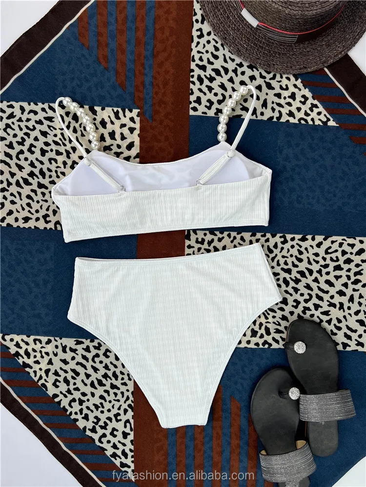 Women 2023 Two Piece Swimsuit Pearl Strap Bandeau High Waist Bikini
